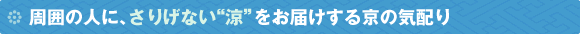 そしてこの夏、京都のおもてなしと同様に、周囲に暑さを感じさせず、しかも快適に過ごせる強い味方が登場しました。
