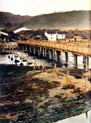 壬生の屯所から祇園会所までは四条通を真直ぐ東へ約3100メートル余り、徒歩で約40分もあれば到着できます。周囲の目を避けることがあったとしても半刻(約一時間)後には全員が揃ったものと考えられます。 ここで身支度を整え、捜索と捕縛についての打合せを行い会津藩と合同して出動する予定でした。しかし、午後8時を過ぎても会津は現れませんでした。このままでは時期を逸すると判断した近藤は隊を2隊に別け、一隊は近藤が率いる6人(沖田・藤堂・永倉・原田・養子周平・谷万太郎)、もう一隊は土方が率いて出動しました。当然、探索方を走らせ、付近一帯を捜索していたに違いありません。この時点でも浪士の会合場所は判明していなかったと推測されます。近藤隊は鴨川の西側、土方隊は鴨川の東側を重点に宿改めを実施しながら捜索を開始しました。
