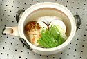 熱くした3.の汁を注ぎ入れ、蒸し器で約5分間蒸します。水菜は5~長さに切り、蒸しあがる寸前に器に入れます。