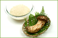 松茸は『松茸の土瓶蒸し』の処理の仕方1.を参照にして、汚れを取ります。松茸は3cm位の薄切りにし、酒少々(分量外)をふっておきます。