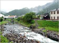 新橋から吉田川に飛び込む若者は、郡上おどりと並ぶ夏の風物詩。毎年7月には変装ジャンプ大会も開催される。 |
