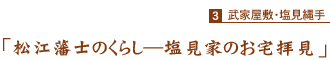 今回は、江戸時代の松江の藩士であった塩見さんのお宅を拝見してみることにしましょう。