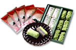 創業明治の老舗、末広醤油醸造の「オオギイチ醤油」と、厳選した良質の小麦粉、赤穂の塩、そして揖保川の水を使い、伝統の製法で丹精込めて作り上げた揖保の糸をお土産にしました。 |