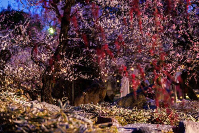 全国天満宮の総本社であり、梅の名所としても名高い北野天満宮の「梅苑」が2月上旬から特別公開される。また夜のライトアップでは、夜の観梅も楽しめる。