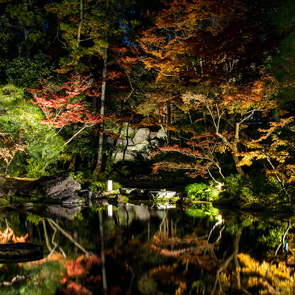 無鄰菴を造営した元勲・山縣有朋がもし照明デザインを手がけたら、という着想から生まれたライトアップは、訪れる皆様を非日常の世界へと誘います。お一人でゆっくりと、または大切な方と一緒に、歴史ある庭園の美しさを存分に感じていただける特別な夜をお過ごしください。
