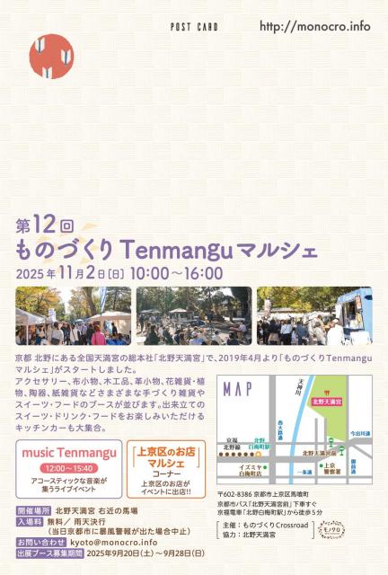 | 日時 | 2025年11月2日(日)10:00~16:00 第12回 music Tenmangu 12:00~15:40 |
