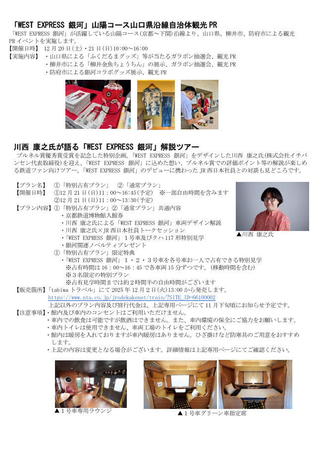 「WEST EXPRESS 銀河」山陽コース山口県沿線自治体観光PR