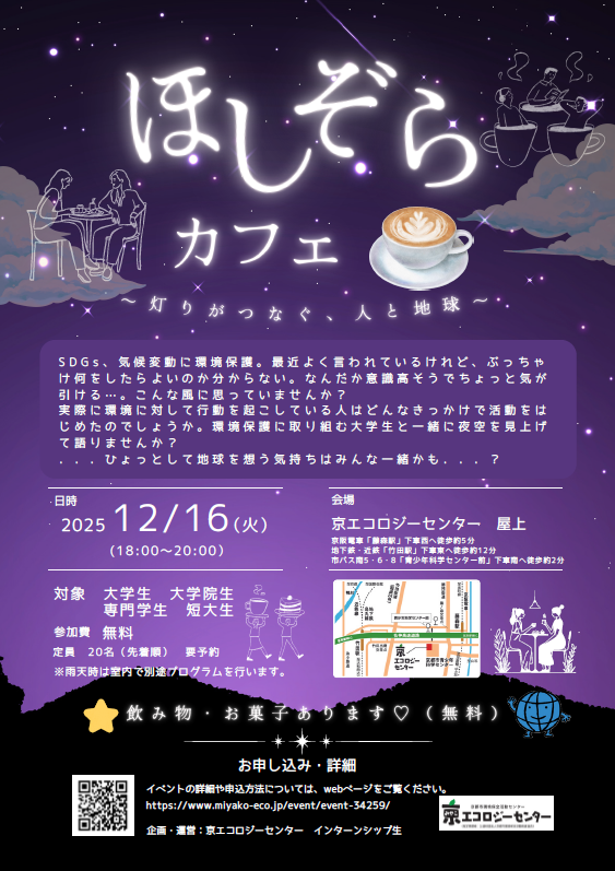 「SDGsとか気候変動ってなに?」「ぶっちゃけ何をしたらよいの?」、同じ学生同士、夜空の下で気軽におしゃべりしながら、地球のことを考えるイベント。