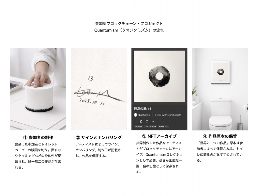 本展は、この世のすべてが儚く流れていく「無常」の真理を、トイレットペーパーというメタファーを通じて提示する現代美術展である。究極の消耗品であるトイレットペーパーは、その儚さ、脆さ、そして日々流れていく運命において、私たちの生命や記憶、時代の価値観、信じている物語といった、有象無象すべての無常と酷似している。