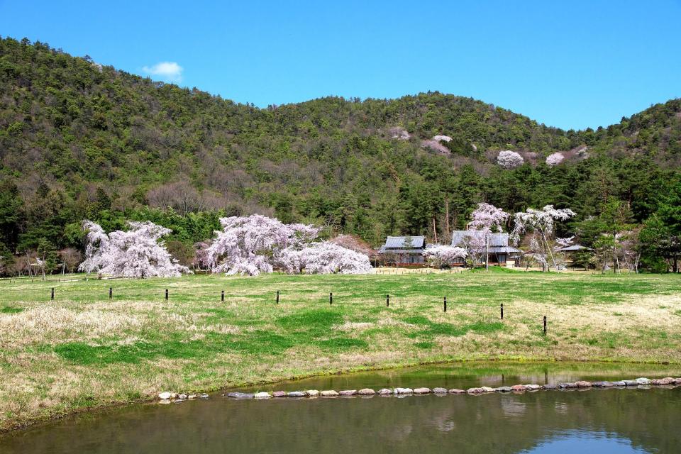 あまり知られていない非公開の桜絶景スポット。みどころは庭苑の中心にある大きな三本のしだれ桜。3月下旬から、しだれ桜、ソメイヨシノ、山桜、紅しだれと開花し4月上旬まで楽しめます。
