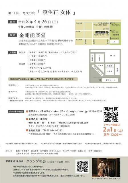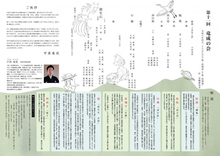 本年4月26日、京都・金剛能楽堂にて「第十一回 竜成の会」を開催いたします。
