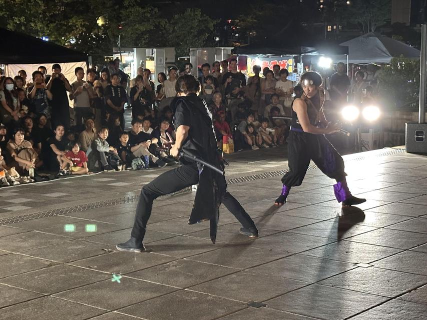 京都夜市でも人気の高い忍者ショーを今回も開催。訪日観光客にも親和性の高いコンテンツとして、京都の夜にエンターテインメント性を加えます。食や買い物だけでなく、見る楽しさ、体験する楽しさも味わえるのが京都夜市の魅力です。