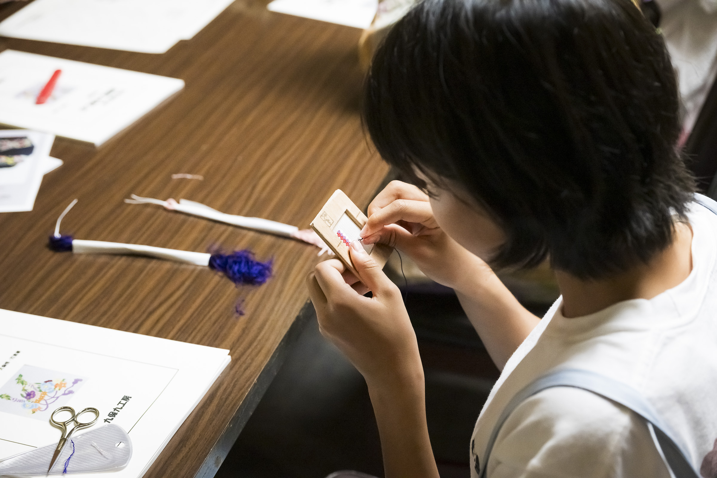 久保悟先生・万里先生とともに、1000年以上の歴史がある絽刺しを体験します。