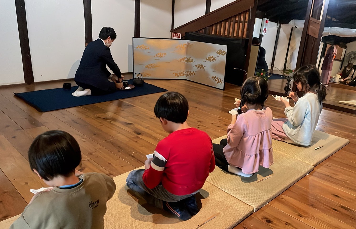 おけいこ内容:入室の所作、お茶の頂き方、お点前の形、茶道の歴史、実技、おもてなしの心