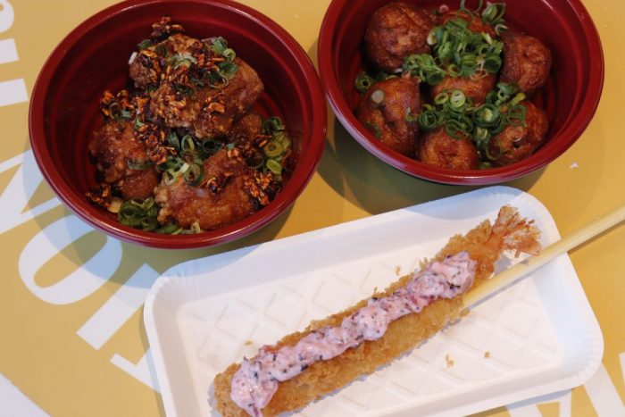 例えば、手前の「しば漬けタルタルえびフライ」(400円)には、京つけものの人気店「もり」のしば漬けが使われています。しば漬けの酸味がサッパリして食べやすい!ピンクの色合いもかわいくてユニークです。