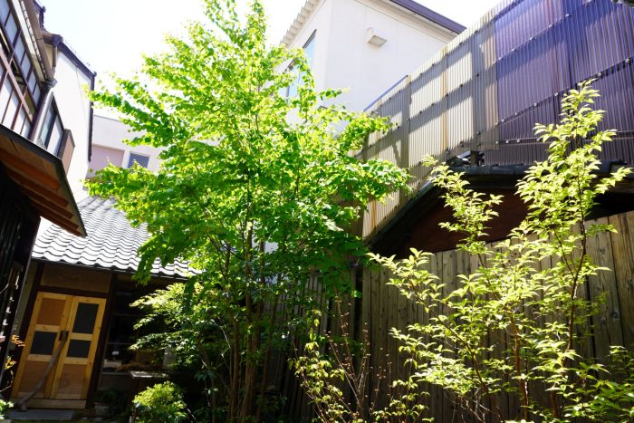 すがすがしいシーズン、「まつは」の中庭の新緑も美しく、風薫るという表現がぴったりです。ちなみに、庭の中央にある桂の木は6年前のお店を始める直前に植えられたもの。当時は姉妹の身長と同じくらいの高さだった木は、今やまっすぐ天へ向かうように伸び、食事で来店した庭師さんに「良い桂ですね」と感心されるほどに。この日は、桂の木の下にテーブルを運び、ホームパーティーのようなイメージで料理の撮影を行いました。