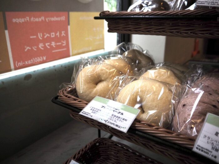 1階にはベーグルがずらりと並んでいます。丸いベーグルが並ぶ姿はかわいらしく、眺めるだけで癒されます。