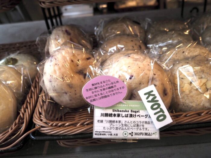 また、京漬物の老舗「川勝總本家(かわかつそうほんけ)」とのコラボも。「川勝總本家しば漬けベーグル」は、しば漬けがたっぷり混ぜ込まれている京都ならではのベーグルです。