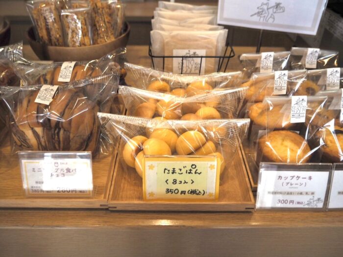 食パンの他にも、オープン当初から人気の「ここんのたまごパン」やマーブル食パン、カップケーキなど豊富なラインナップ。