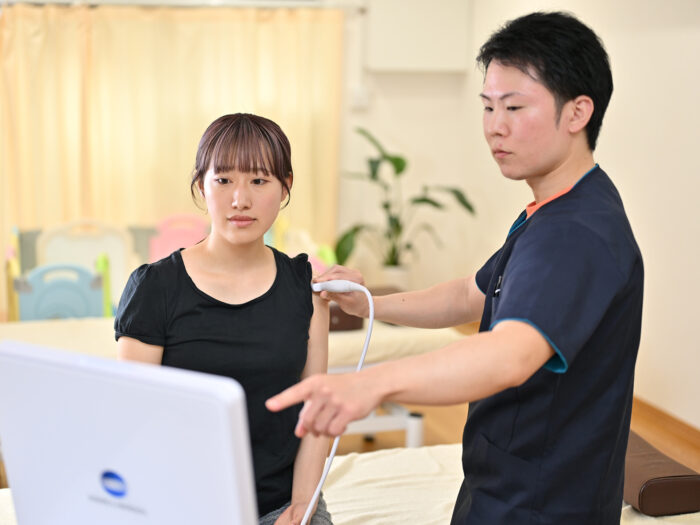 姿勢分析や触診のほか、専用エコーで筋肉の動きも深さまで把握できるのがまさき整体院の強み。検査結果をもとに、明確な施術計画を提案してくれます。