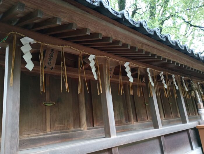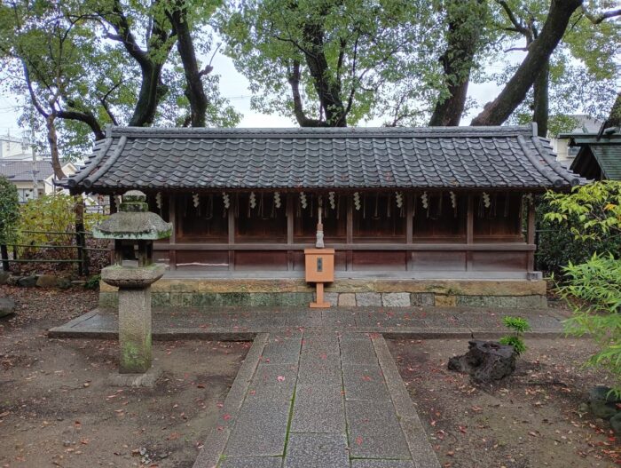 毎回、本殿だけでなく本殿の周囲に祀られている境内社にもお参りしています。その中に、特に説明板も見当たらない横長のお社が本殿の真後ろの位置にありました。