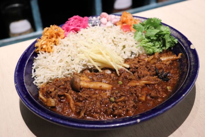 今回いただいたのは、「和山椒香る鹿ときのこの山キーマカレー」(並・1,680円)。京都京北で獲れた新鮮な鹿肉のひき肉を使用し秋の味覚でもあるきのこもふんだんに入っています。