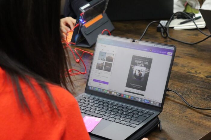 既にAIも使われているという起業をめざす方(Cコース)は、告知チラシのクリエイティブ制作に挑戦。