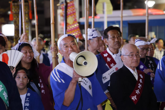 三栖神社祭礼実行委員会 委員長の内藤さんからは準備に関わった人々へのねぎらいと見学者への挨拶が。