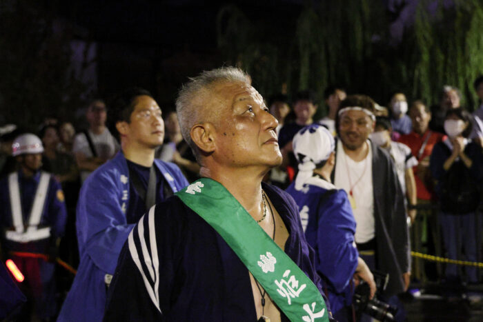 炬火祭りの無事を見届けた安堵の表情の炬火部長の林さんに、見学しているこちらまで胸が熱くなります。