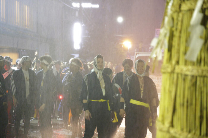 祭り前日には、担ぎ手を炎から守る「火除け打ち込み」という作業が行われます。