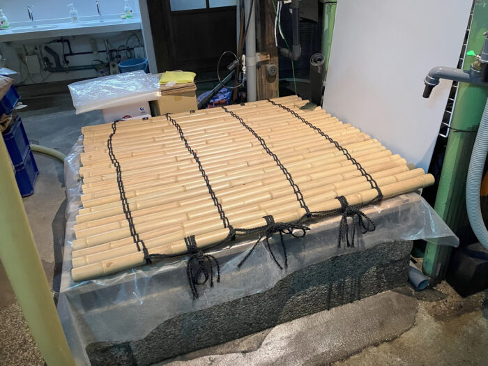 蔵の2階では、蒸し米から麹造りが行われていますが、不要な菌が入らないようにと、関係者以外立ち入り禁止です。