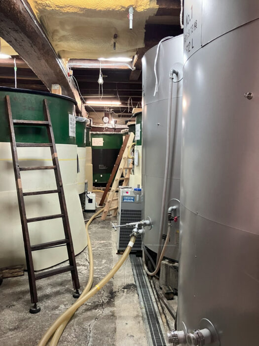 蔵の中にはお酒を発酵・保存させるタンクもいっぱいありまして、中をのぞかせていただきました!