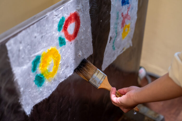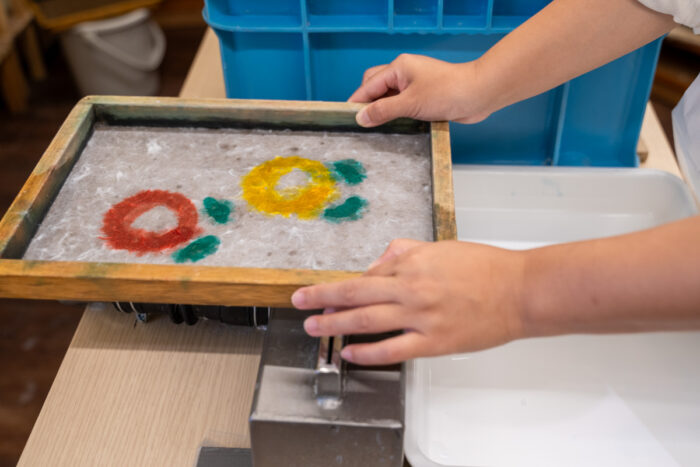 その後「紙雑貨を買うだけでなく、楽しい思い出も持って帰っていただきたい」という思いから、紙漉き体験のワークショップを開始。