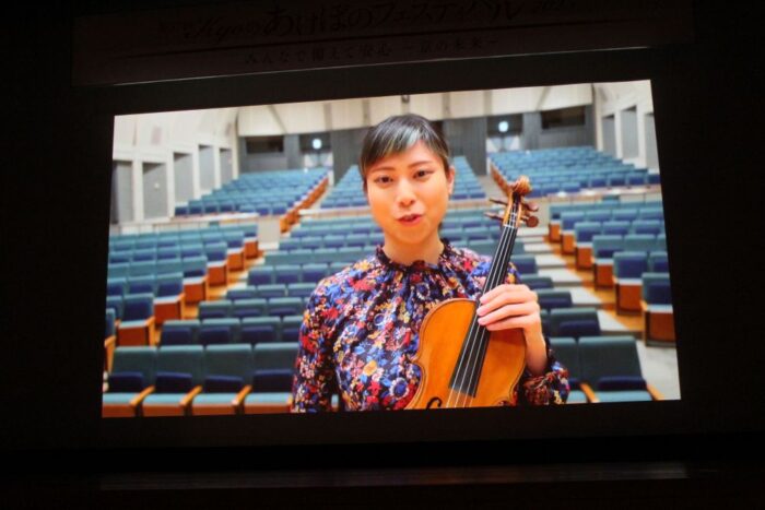世界で活躍するヴァイオリニスト石上真由子さんは、「素敵な仲間や先輩、師匠をはじめとする人との出会いに恵まれてきたことへの感謝を忘れず、アップデートしていきたい。」とコメント。その映像に会場からは大きな拍手が送られました。