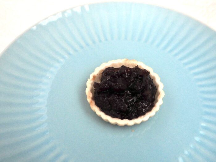 沖縄県の波照間島産の黒糖で炊いたこしあんを丸くし、つややかになるよう寒天がかけられた、食べるのがもったいなくらい美しい京菓子です。