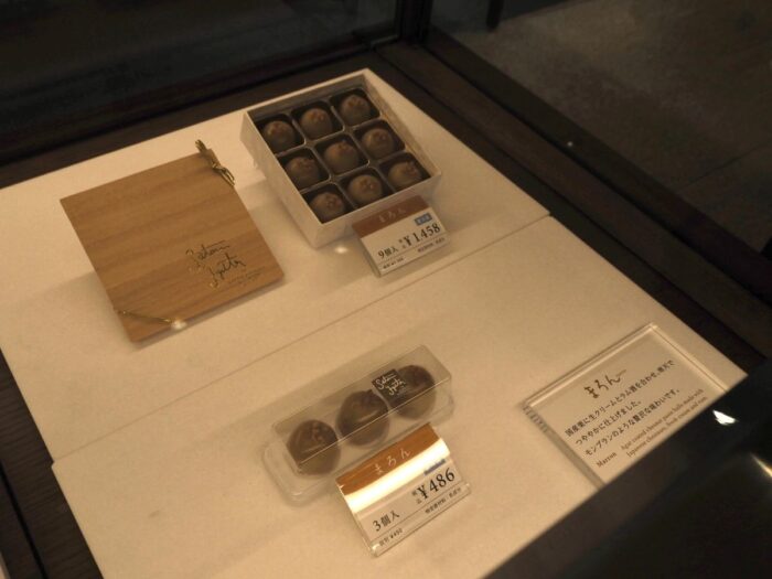 藤田さんが最初に手掛けた「まろん marron」(9個入1,458円)は、「鳥羽玉」の栗バージョンとして作られ、何と試作一発でできあがったというから驚き。