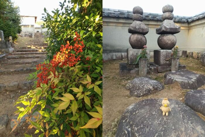 藤原俊成の墓への参道と墓所(右側の五輪塔が俊成の墓)