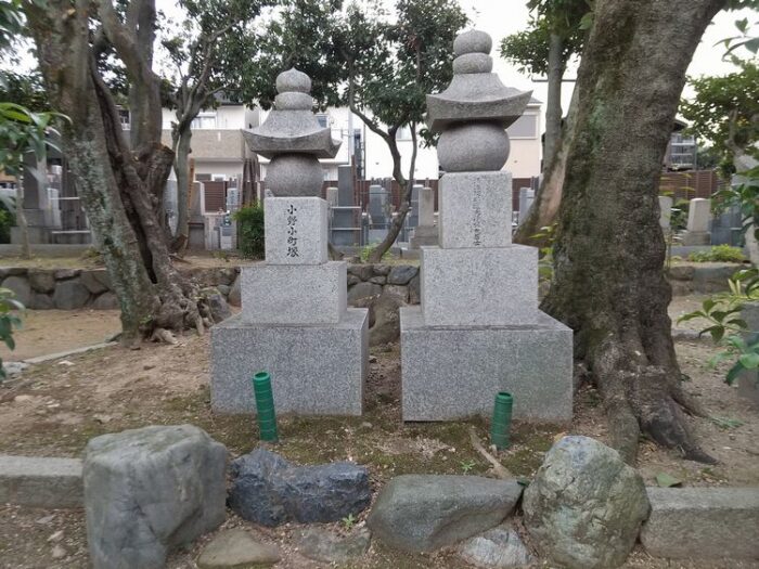 在原業平は仁明(にんみょう)から陽成(ようぜい)まで4代の天皇に仕えた貴族でした。仁明天皇に仕えた歌人には、僧正遍照や文屋康秀がいます。この3人は六歌仙に数えられる和歌の名手であり、深草少将(ふかくさのしょうしょう)のモデルともいわれています。深草少将とは、室町時代に成立した能「四位少将」や「通小町」に登場する架空の人物。六歌仙の紅一点の小野小町に求婚し、100日通ったら結婚してもいいと言われて小町の元に通い続けますが、99日目に死んでしまったという物語です。京阪墨染駅に程近い欣浄寺(ごんじょうじ)が深草少将の屋敷跡とされ、境内に少将と小町の供養塔があります。