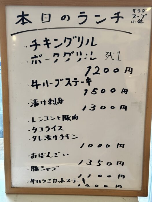 定番のランチメニュー以外にもチキングリルやポークグリル、牛のステーキなどメニューも豊富なんですよね。