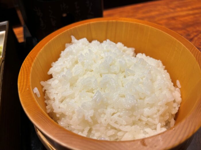 ごはんはお櫃で提供され、ふっくらとした炊き上がり。