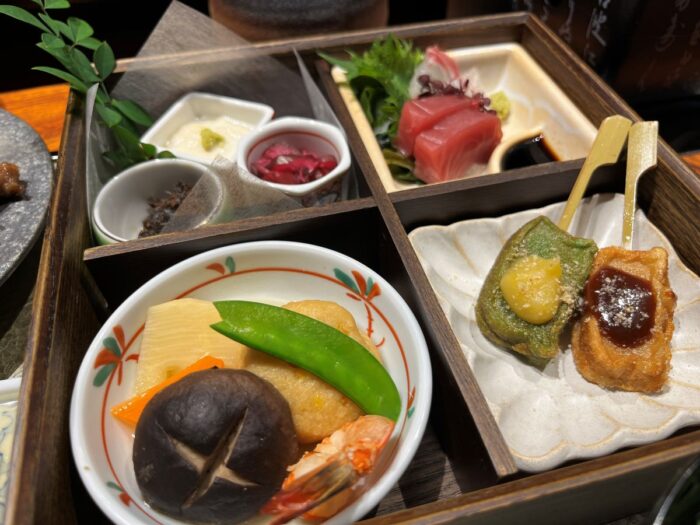 そのほかにも、生麩田楽や、野菜とひろうすを炊き合わせた炊いたんなど、京都らしい副菜が並び、味のバランスも申し分なし。