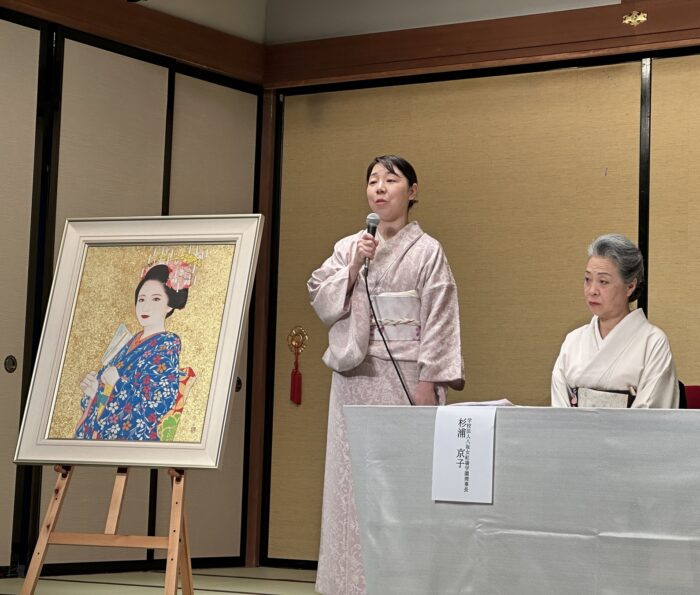 また、今年の「都をどり」のポスター原画を担当した日本画家 福田 季生氏には原画の解説やご自身の思いを語られました。