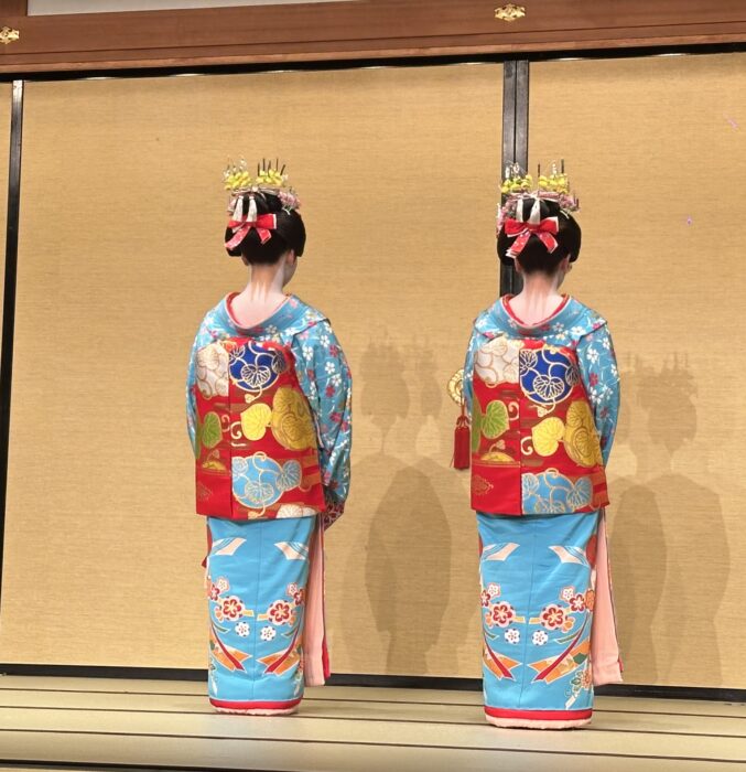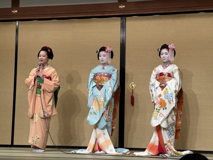 その後初舞台を踏む舞妓3名(左から 豆しず・心葉・夢千鶴)の紹介を挟んで、