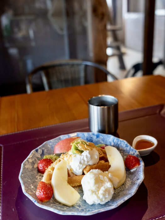外はカリッと、中はふわふわ。今回いただいたフルーツワッフルは、季節のフルーツが