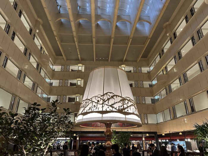 入口からエスカレーターで2階フロントに上がると、目の前には ホテルのシンボルである「かんじんの京灯り」があり、それを中心に広がるノスタルジックでモダンな空間は数々の「空間アワード」を受賞するほどカッコいい開放的な空間になってます。