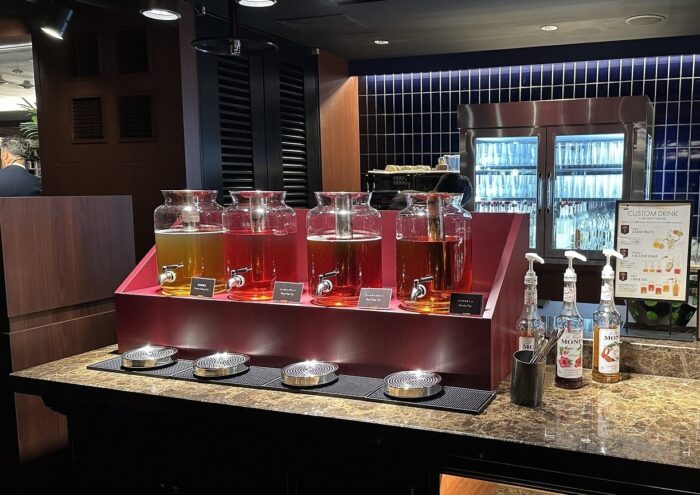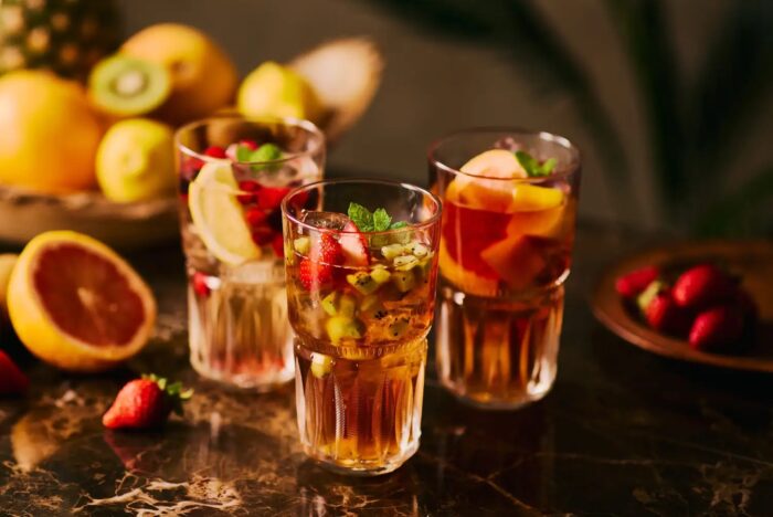 ルイボスティーや台湾烏龍茶など4種のティーをベースに、パッションフルーツやエルダーフラワーなどのシロップと、いちごやマンゴーなどの季節のフルーツをそれぞれ自由に組み合わせ、自分だけの「オリジナル・ティーモクテル」を作ることが出来る体験型ドリンクバーなんです!