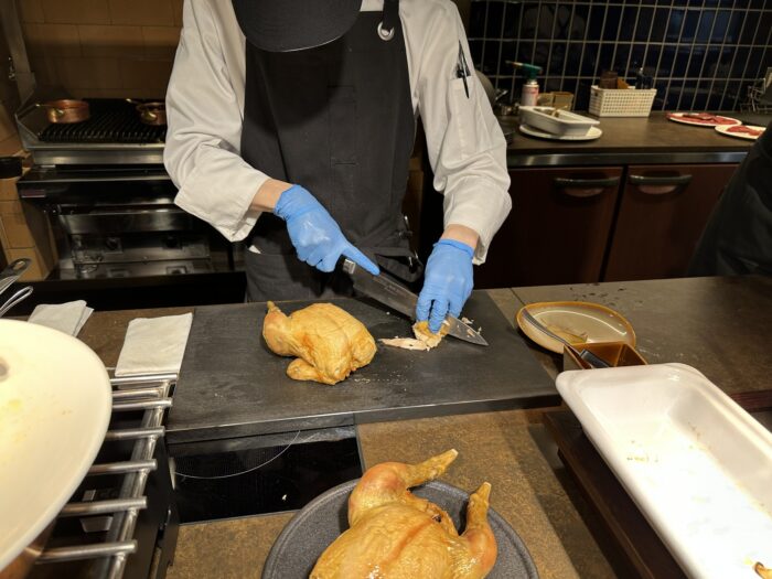 目の前で切り分けてくれる「ローストチキン」