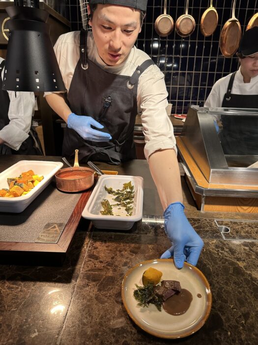 さらに、「グリル」・「カーヴィング」・「鉄板」の3つのステーションから肉料理を提供されていて、最大の特徴は和・洋・中の枠を超えたメニューを30分刻みでメニューを変えて提供するスタイルになっていることなんです!