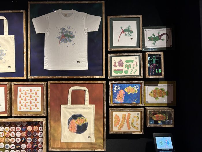作品に関連したプロダクトや作品空間で描かれた絵によるオリジナルグッズなどが並び、展示の余韻をそのまま持ち帰ることができます。