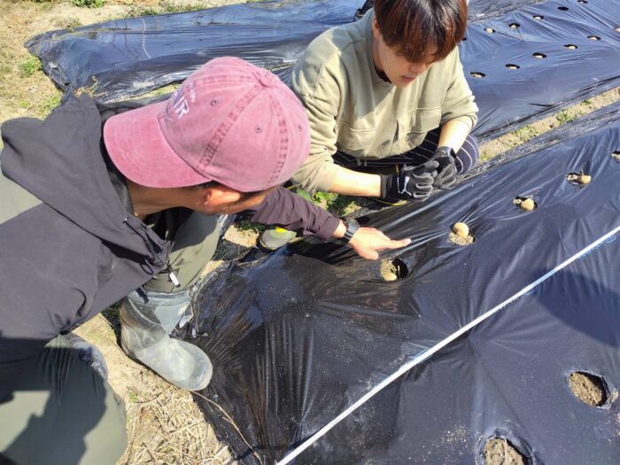 自ら畑で野菜を育てている従業員
